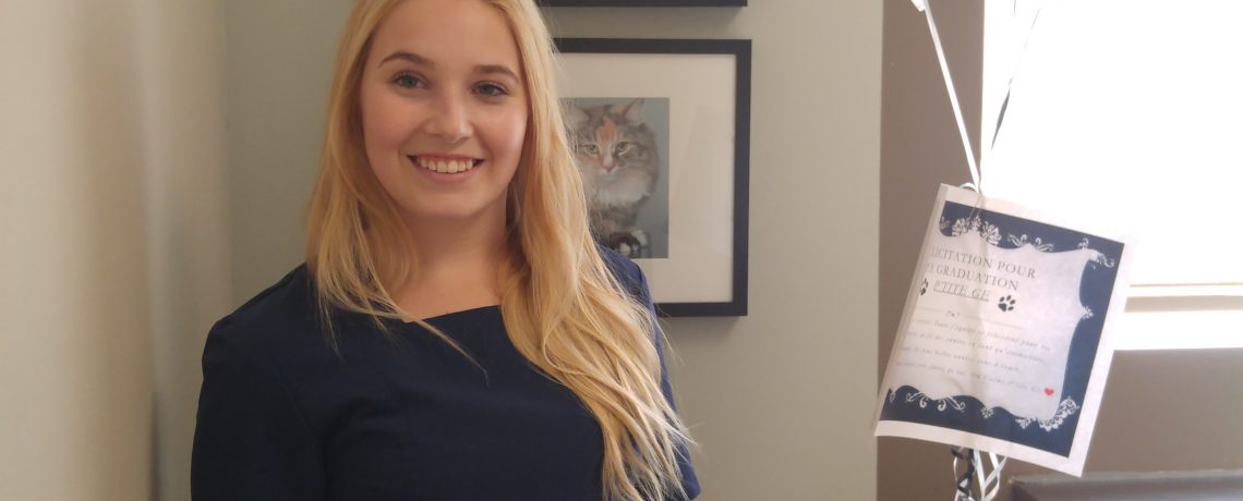 Toute l’équipe de la Clinique vétérinaire de Lachenaie tient à féliciter Geneviève qui a complété cette semaine sa formation de technicienne en santé animale. La formation en technique de santé animale est une formation collégiale d’une durée de 3 ans à temps plein durant lesquels les étudiants reçoivent des formations médicales théoriques et pratiques puis participent […]